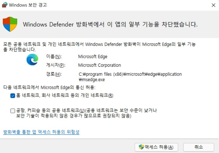 대부분 프로그램 깔면서 저 경고창 많이 보셨을 겁니다.