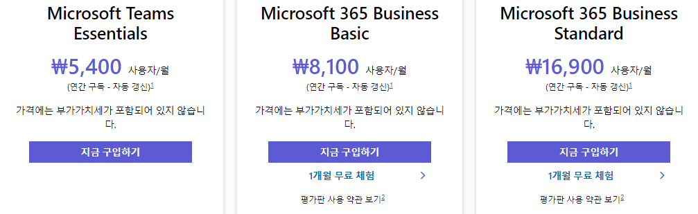 비슷한 가격인 M365 Standard는 Office까지 주는데.. 가격이 쪼금 아쉽죠